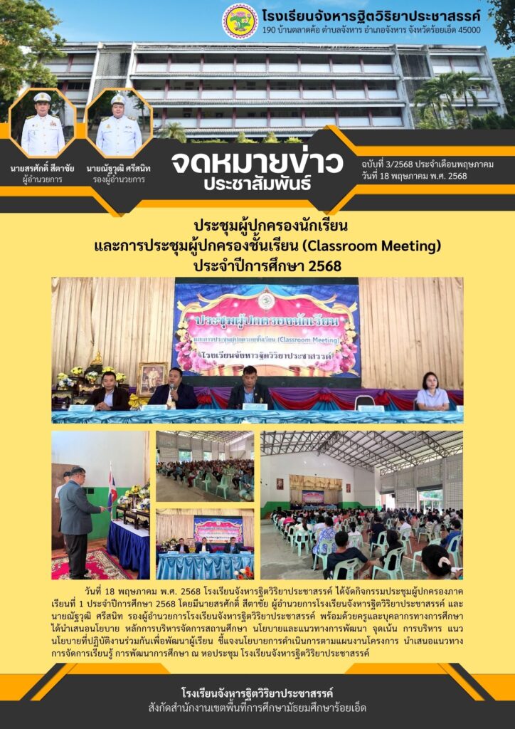 3/2568 ประชุมผู้ปกครองนักเรียน และการประชุมผู้ปกครองชั้นเรียน (Classroom Meeting) ประจำปีการศึกษา 2568 / จดหมายข่าว / By Kru.Chonlasit / 18/05/2025