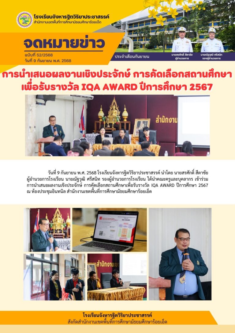 52/2568 การนำเสนอผลงานเชิงประจักษ์ การคัดเลือกสถานศึกษา เพื่อรับรางวัล IQA AWARD ปีการศึกษา 2567