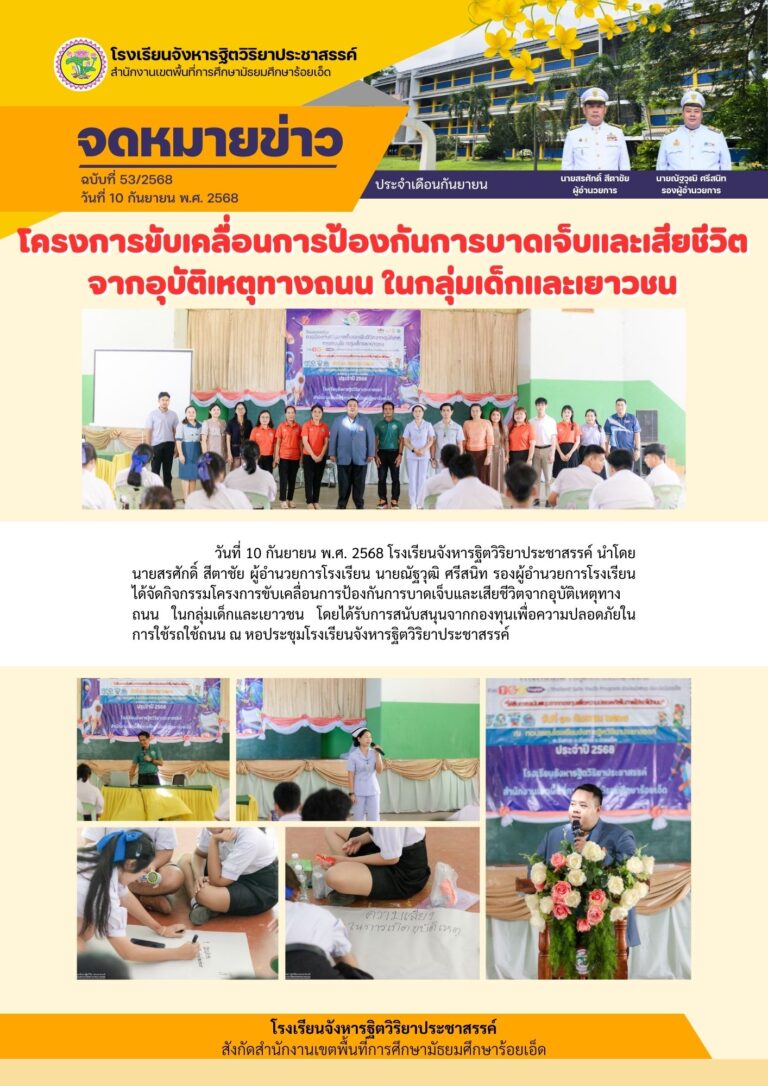 53/2568 โครงการขับเคลื่อนการป้องกันการบาดเจ็บและเสียชีวิตจากอุบัติเหตุทางถนน ในกลุ่มเด็กและเยาวชน