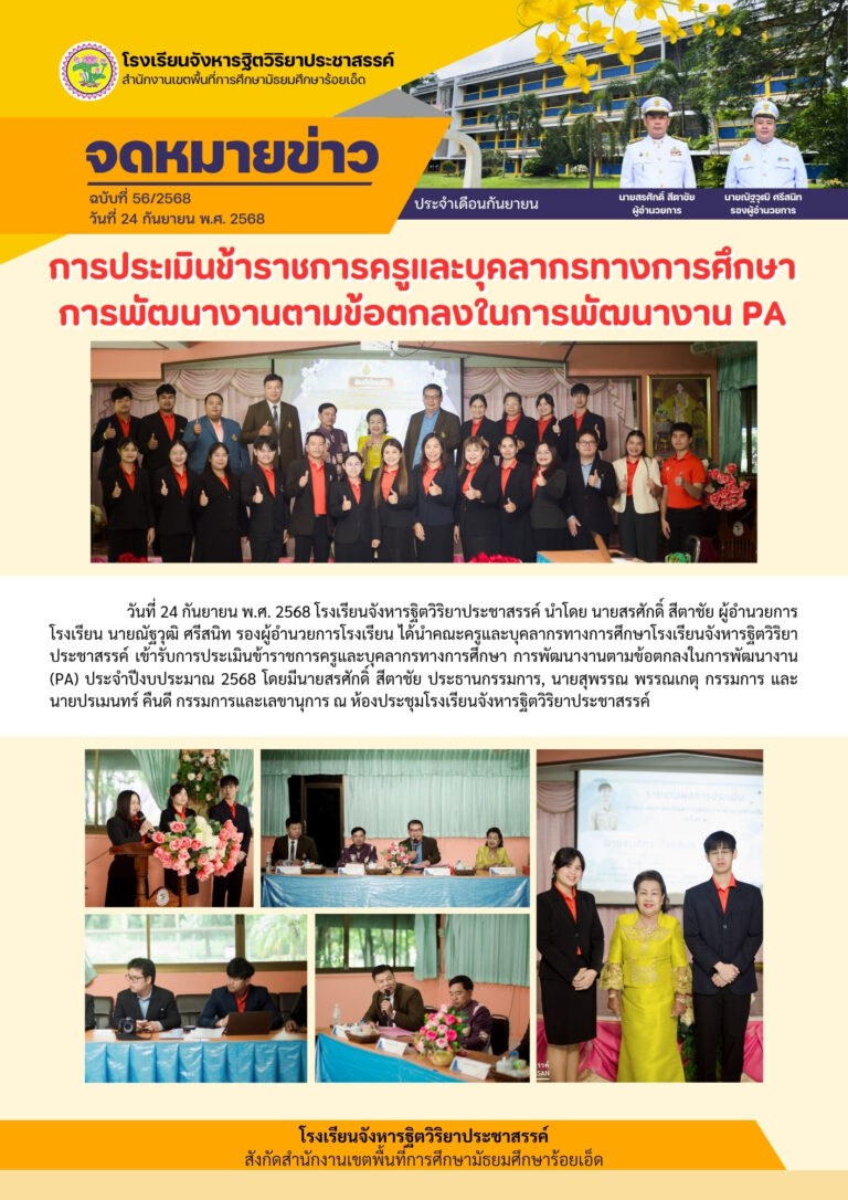 56/2568 การประเมินข้าราชการครูและบุคลากรทางการศึกษา การพัฒนางานตามข้อตกลงในการพัฒนางาน PA
