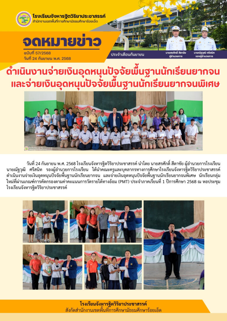 57/2568 การดำเนินงานจ่ายเงินอุดหนุนปัจจัยพื้นฐานนักเรียนยากจน และจ่ายเงินอุดหนุนปัจจัยพื้นฐานนักเรียนยากจนพิเศษ