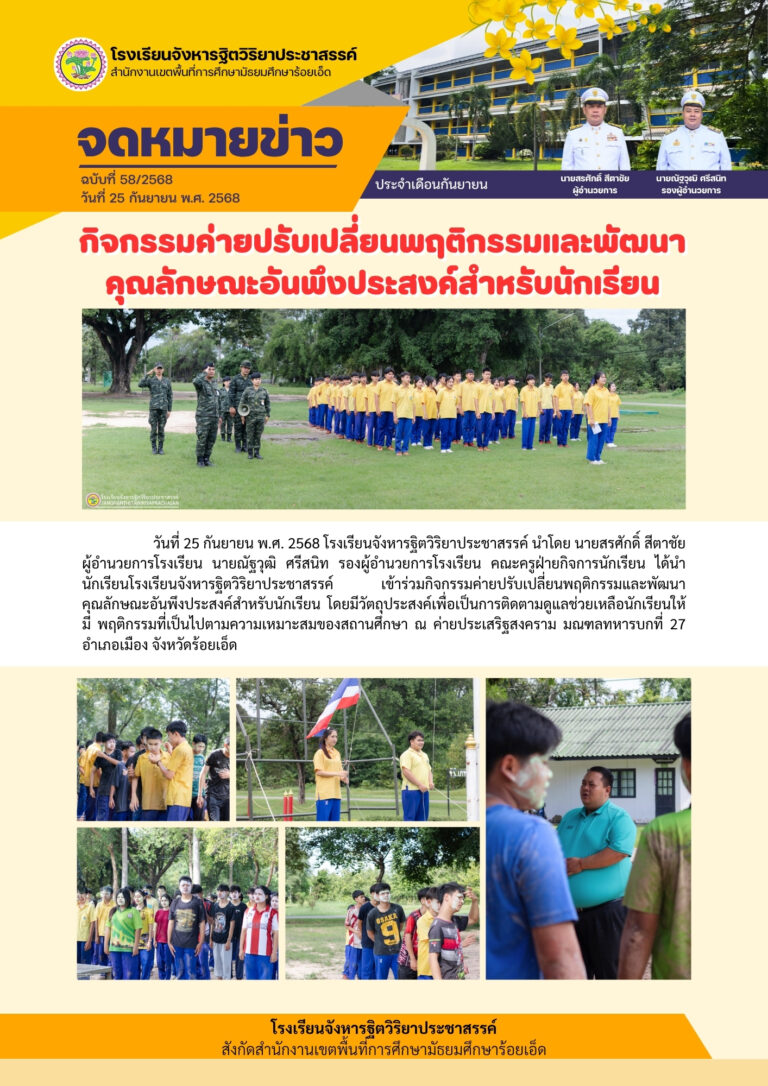 58/2568 กิจกรรมค่ายปรับเปลี่ยนพฤติกรรมและพัฒนา คุณลักษณะอันพึงประสงค์สําหรับนักเรียน